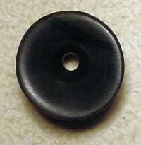 To insert the Ear Spool, the ear lobe was split, then wrapped around the center portion of the spool. Clay and pine pitch were packed on the wound until it healed. The properties of the pine pitch eliminated infection and held the clay in place. When the ear had healed, feathers, beads or other adornment were worn through the hole in the center of the spool.